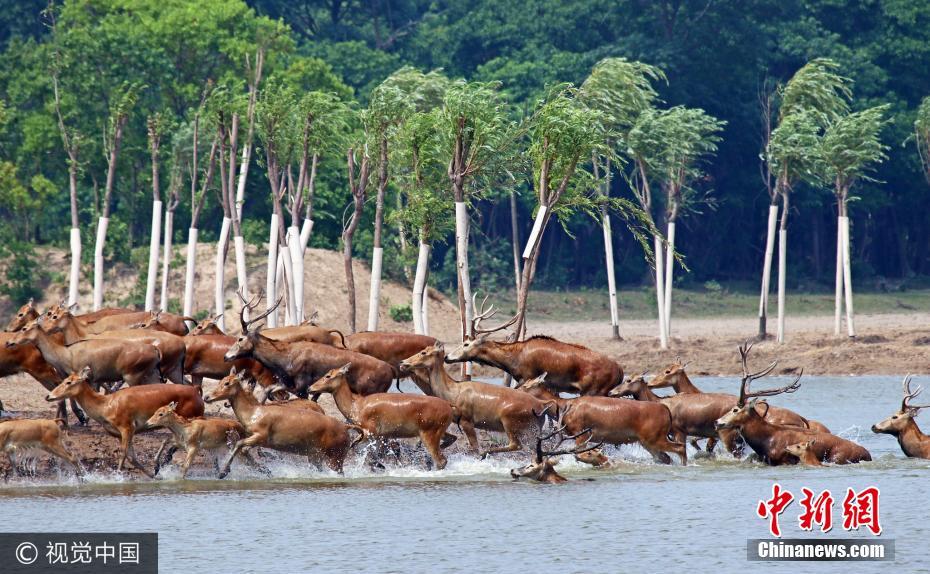 “鹿王争霸”在江苏上演 麋鹿打斗场面震撼