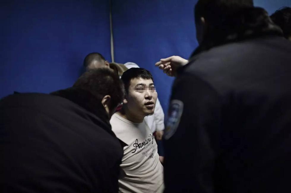 2015年1月31日,一醉酒男子正在与民警对峙。此前,该男子因为醉酒与人发生纠纷被民警带回派出所调查,趁民警不注意,该男子一脚踢向民警。