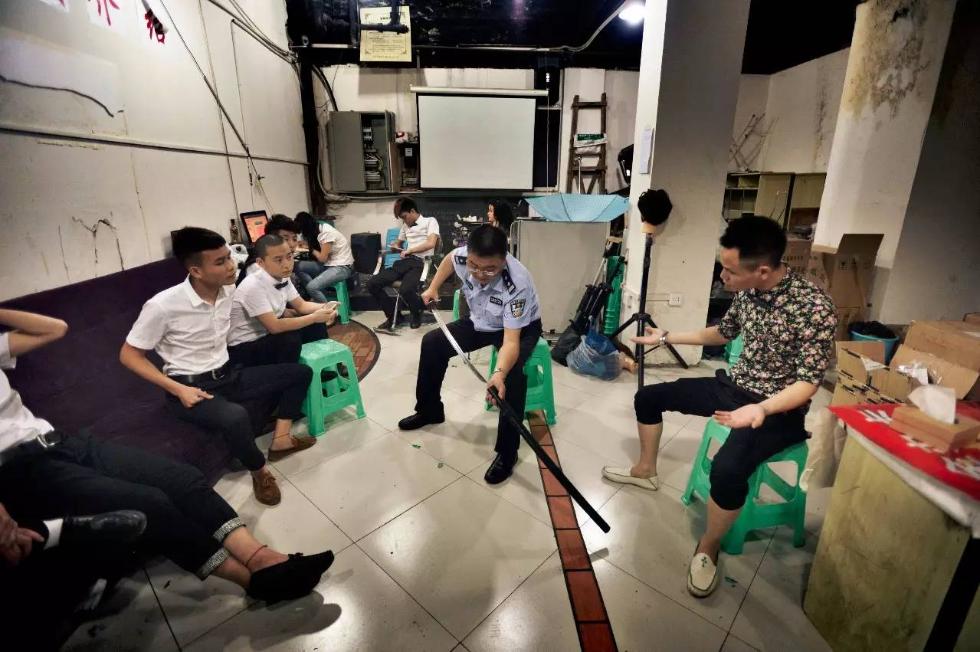 2014年7月15日,重庆沙区陈家湾某发型工作室,民警正在查看一把管制刀具。十分钟前,两位工作人员因小事发生纠纷,其中一位从寝室拿出一把管制刀具吓唬同事。