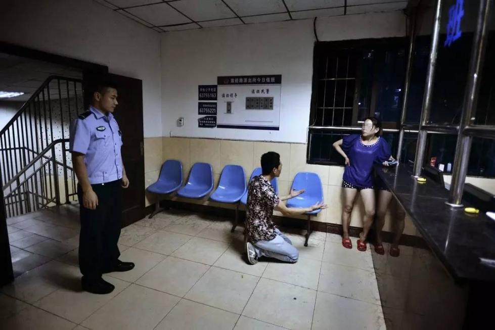 2014年8月4日,重庆,渝碚路派出所,“抢劫犯”袁先生跪地哀求前妻能回心转意。一小时前,一女子报警称,有人当街抢劫,民警迅速赶到现场。经了解才发现是一起感情纠纷。