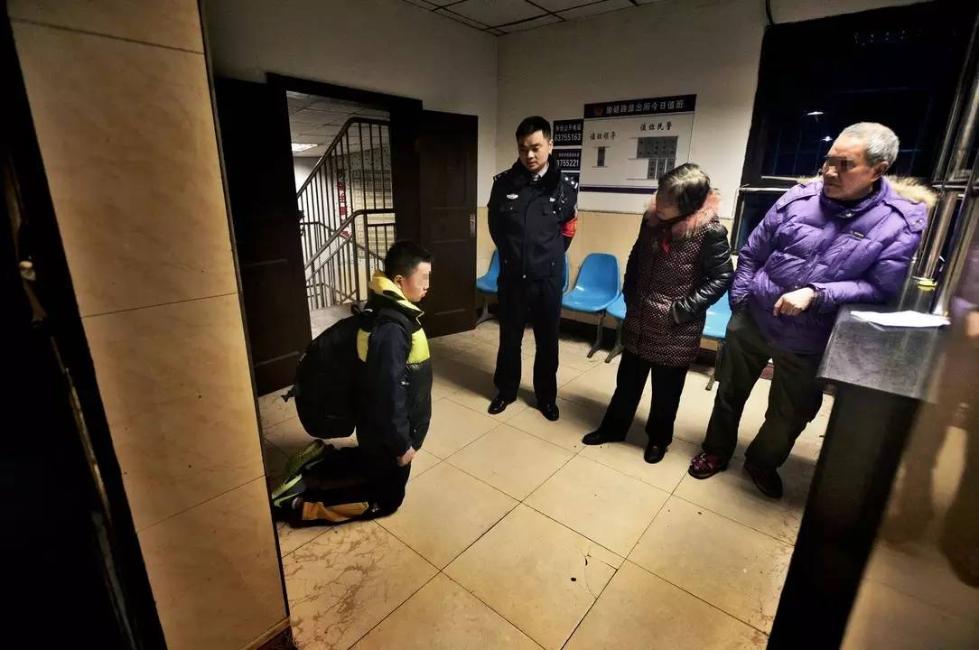 2014年2月12日,1:12,重庆沙区渝碚路派出所,一位小男孩在婆婆爷爷的要求下跪地认错。此前,小男孩拿走家里几千元钱,然后独自在国内旅行。回到重庆后,小男孩在一家宾馆准备住宿时,引起工作人员的怀疑并通知了派出所。