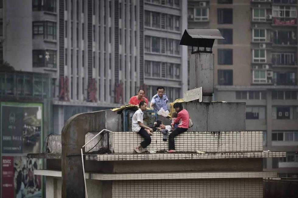派出所所长与谈判专家,在大厦的天台上劝解一对抱着孩子准备跳楼的夫妻。