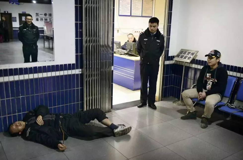 2015年2月11日,一男子睡倒在派出所的地板上装病不起。此前,该中年男子因为与人发生纠纷抓扯被民警带到派出所。由于处理结果未能让他满意,该中年男子就睡倒在地上死活不起。