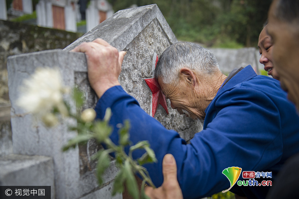 2017年4月2日,云南屏边烈士陵园。86岁高龄的蒲运海,历时2天,坐车近1500公里,终于来到屏边烈士陵园,实现了看望儿子的愿望。四川阆中籍烈士蒲仕平在参加对越自卫反击战时不幸牺牲,其父亲蒲运海寻找儿子墓地38年,最后通过川滇两地众多好心人士接力寻找,今年1月20日终于在云南省屏边县烈士陵园找到了蒲仕平的墓地。现已年过八旬的蒲运海表示,趁自己还走得动,想去墓前看望儿子。