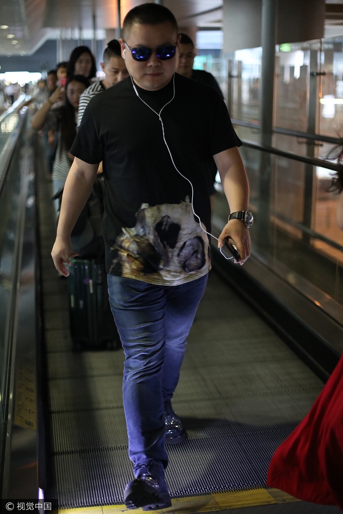 岳云鹏穿潮装现机场 戴墨镜听歌露迷之微笑