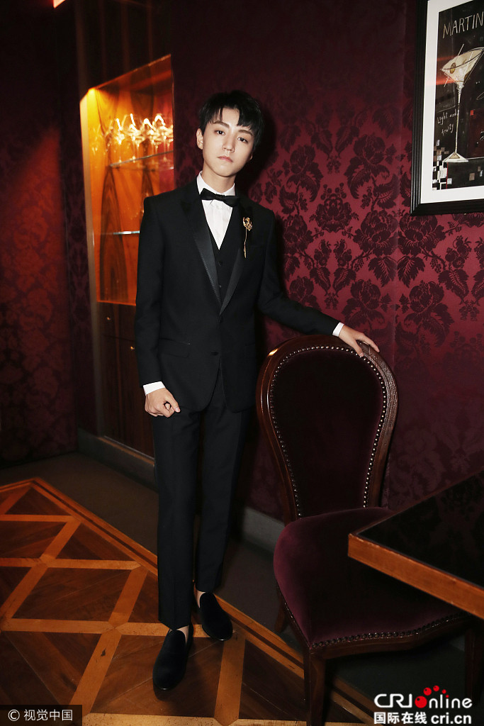 当地时间2017年6月18日,米兰,2018春夏米兰男装周:小鲜肉王俊凯出席杜嘉班纳party,他一脸嫩肉几乎能掐出水。(图片作者:张杰/视觉中国)
