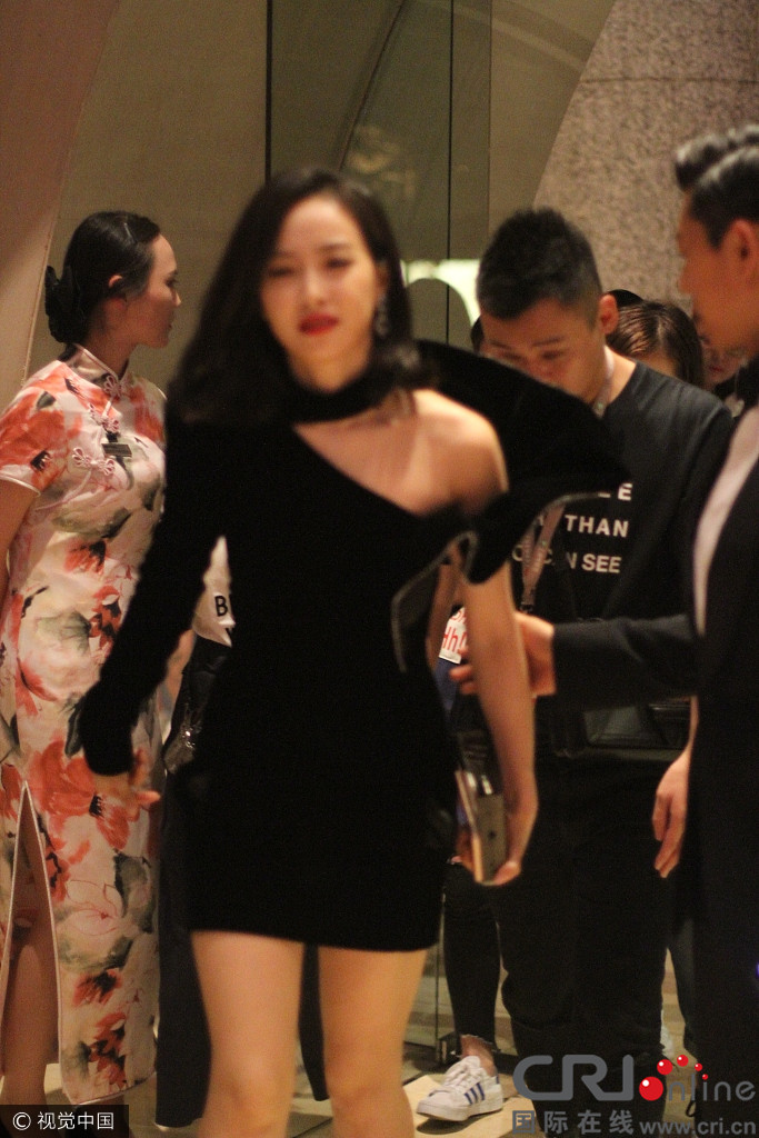 宋茜衣品开挂性感露香肩 不慎鞋子踩飞险些摔跤