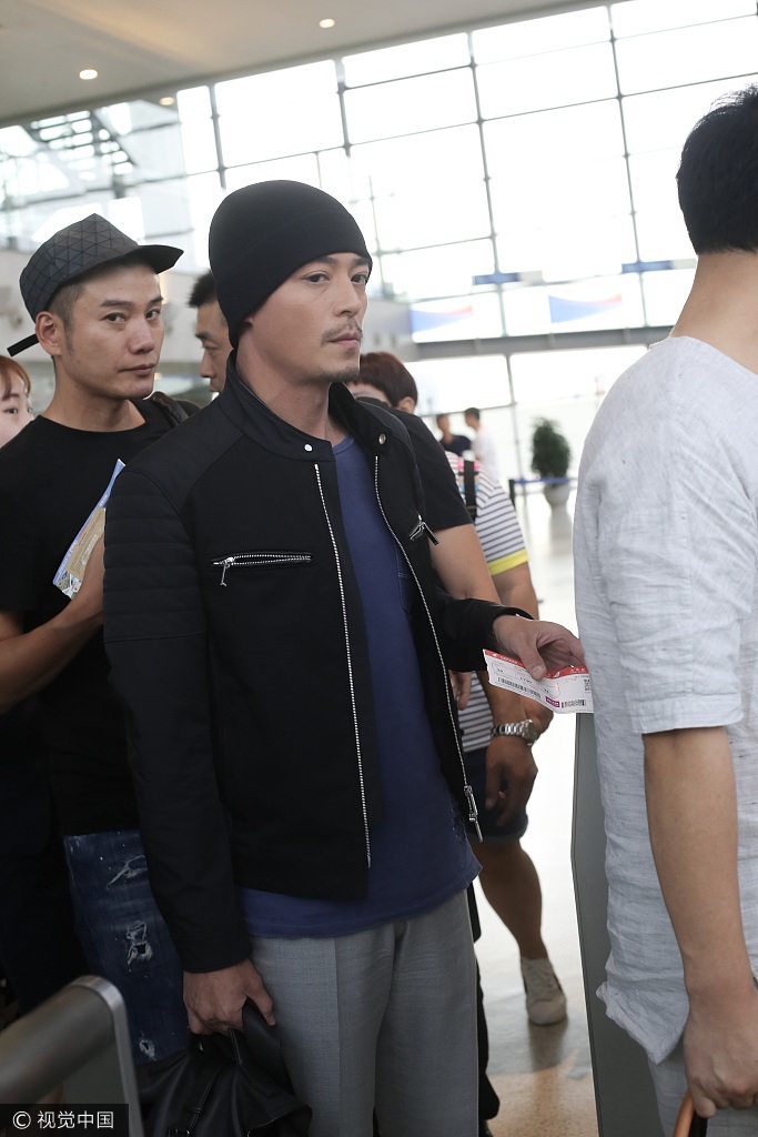 霍建华现机场留小胡子 教育粉丝不要手机拍照