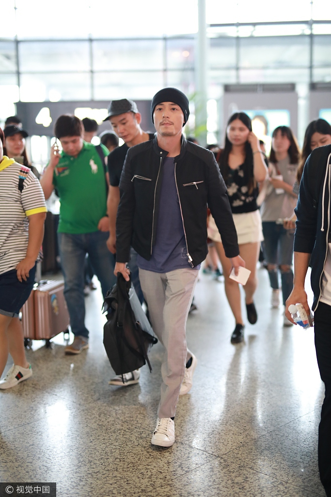 霍建华现机场留小胡子 教育粉丝不要手机拍照