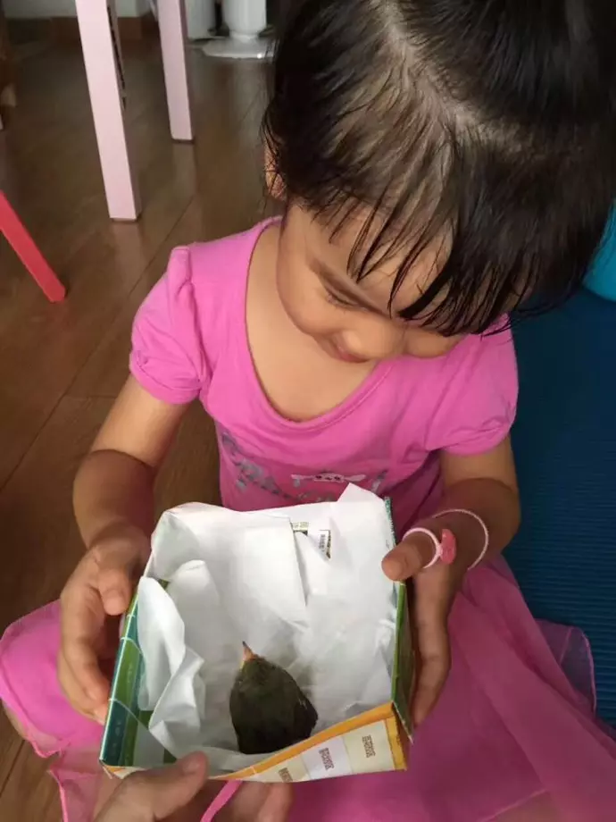 小鸟“救”回家,随后要如何处理呢?李小姐向深圳市蒲公英自然教育促进中心求助,中心资深观鸟专家、深圳市桃源中学观鸟社指导老师蒲颖为其提供帮助,建议李小姐尽快将小雏鸟送回原位。后来,李小姐带着孩子,将小雏鸟送回到原来的位置,“放到够的着的树干上。”李小姐说,她们在树下观察了一会儿,幼鸟不停地叫,不久听到成鸟的叫声,幼鸟开始奋力往上蹦。