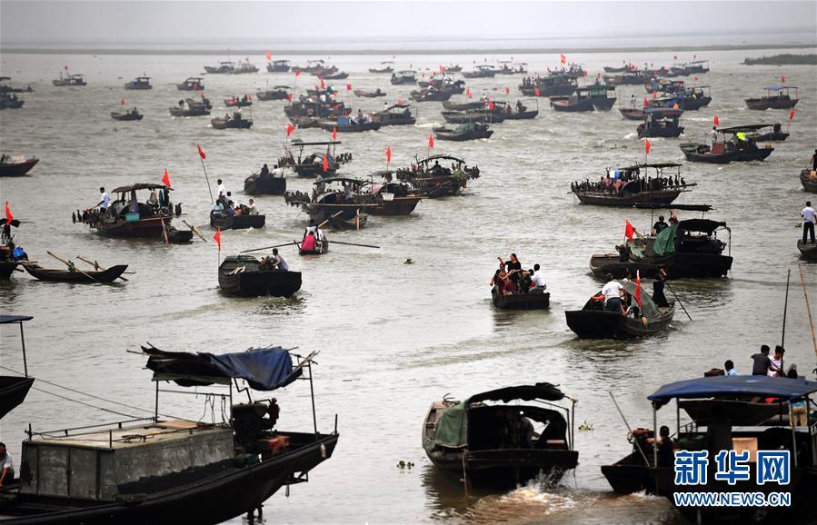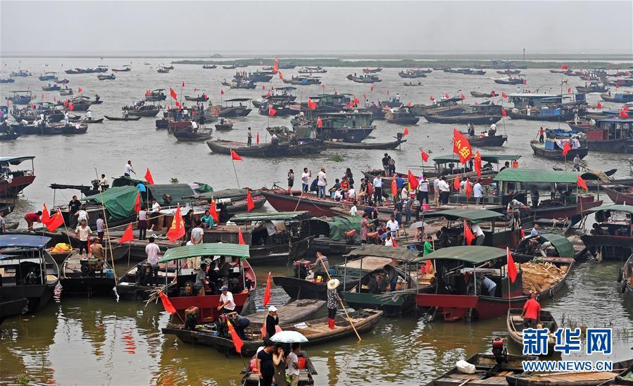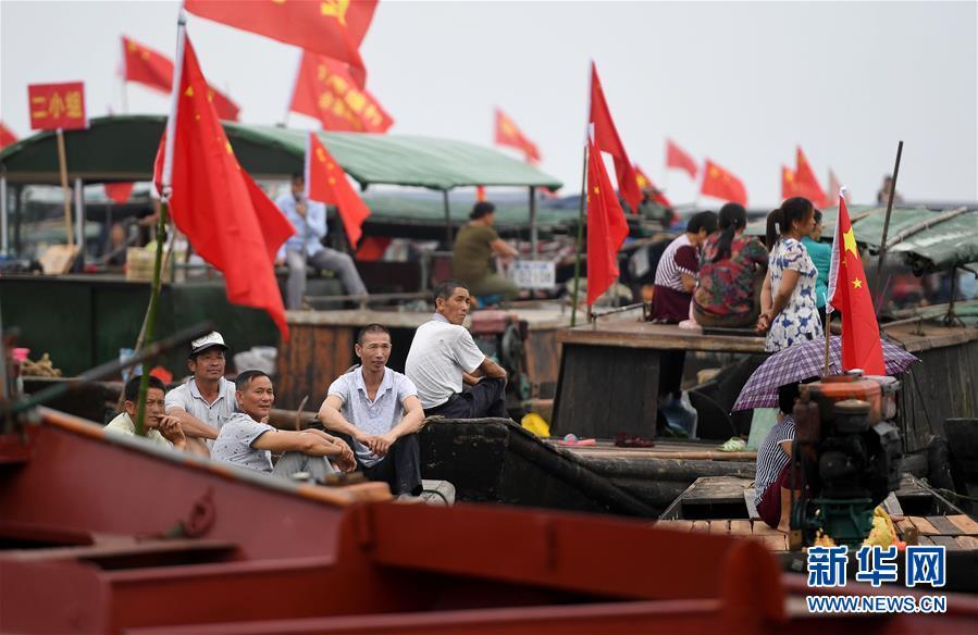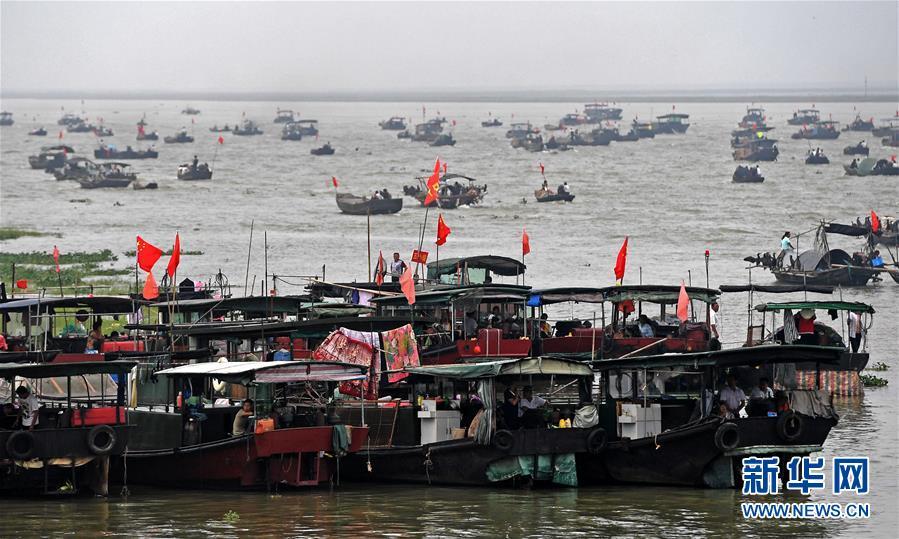 6月20日,渔民们等待开渔。当日,江西省余干县康山水域,远远望去一片烟波浩渺的景象,数百条渔船从这里出发,驶往鄱阳湖深处……鄱阳湖为期3个月的春季禁渔期于当天12时结束,渔民开始入湖进行捕捞作业。新华社记者万象 摄