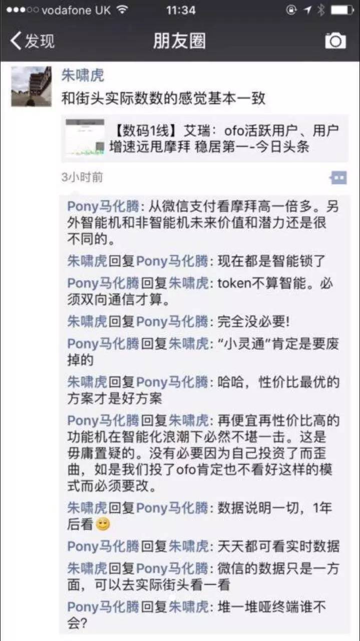 “Pony(马化腾英文名)开了上帝视角去怼一个只能拿到ofo运营数据的投资人,高下立判,”一位上市公司董事长助理、知乎网友告诉周刊君,“腾讯在整合产业数据方面是任何一个VC(风险投资)都难以企及的,沈南鹏都不行。(红杉资本全球执行合伙人)”