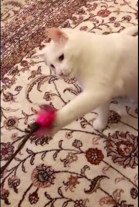 6月21日晚,刘亦菲通过微博上传逗猫的秒拍视频,并称:“是不是洒?”视频中,刘亦菲拿着粉色玩具在小白猫的面前晃来晃去,猫再怎么用力也抓不着,屡战屡败之后灰溜溜的转身走开,十分的逗趣。网友看到此视频后纷纷围观并留言称:“猫猫内心os:你才洒,不和你玩了,哼!”也有网友惦记刘亦菲之前的黑猫,称:“斗胆问一句,黑煤球是被打入冷宫了么,还是说黑煤球被漂白了?”“最后很傲娇的走了好吗哈哈……”