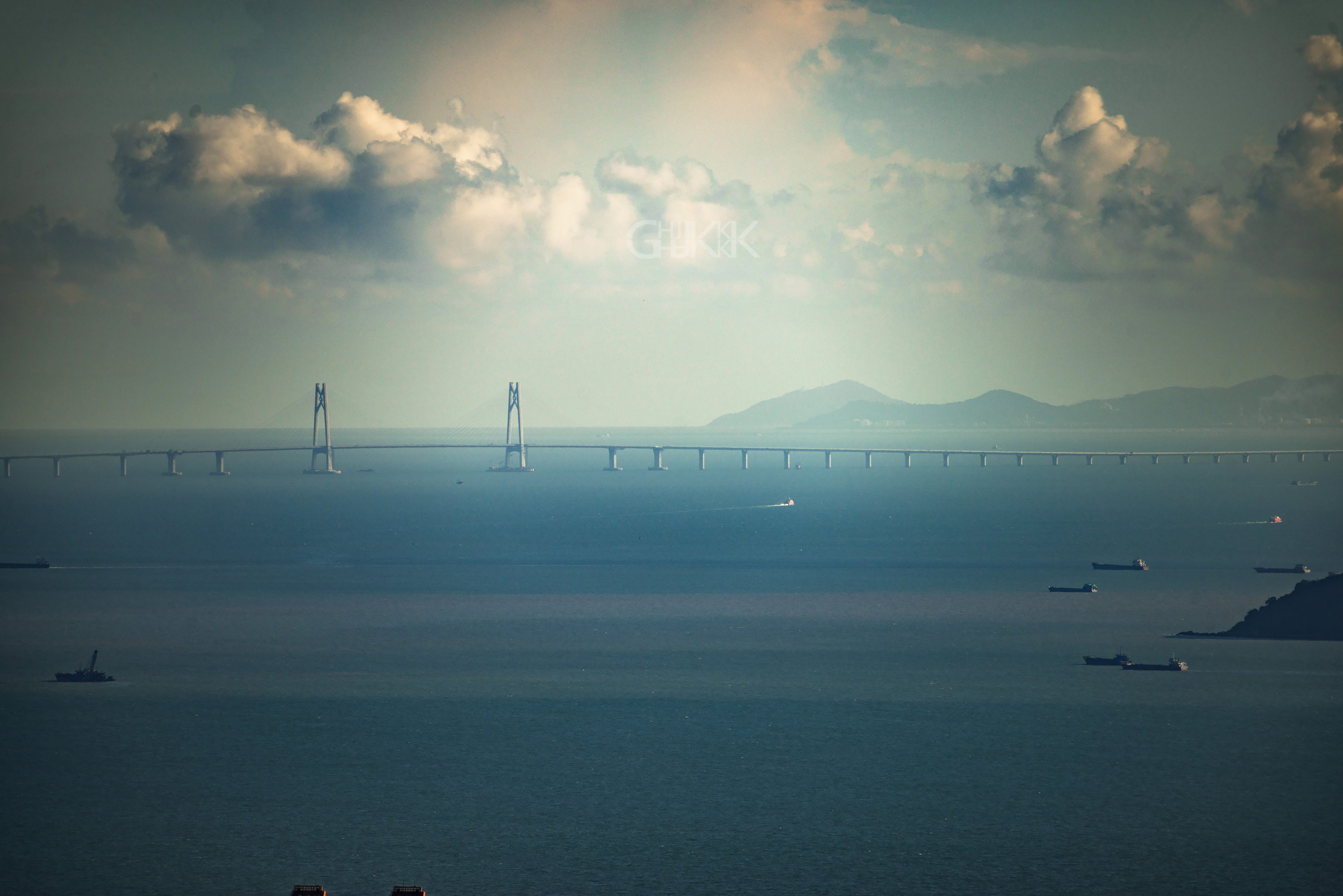 港珠澳大桥的主跨清晰可见,28km