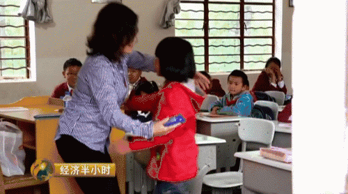 也许是舍不得,也许是太开心,放学回到爷爷奶奶家的杨应蓉,有点害羞地拿出小伙伴写的留言卡片,把上面写的字重新读了一遍。
