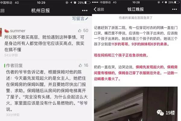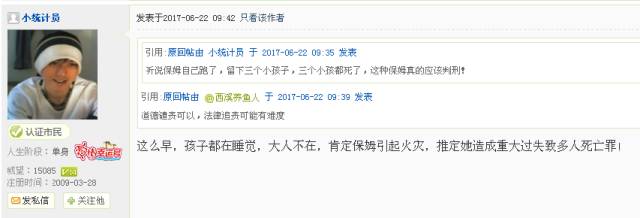 在19楼论坛上,更有网友怀疑,可能是保姆纵火…