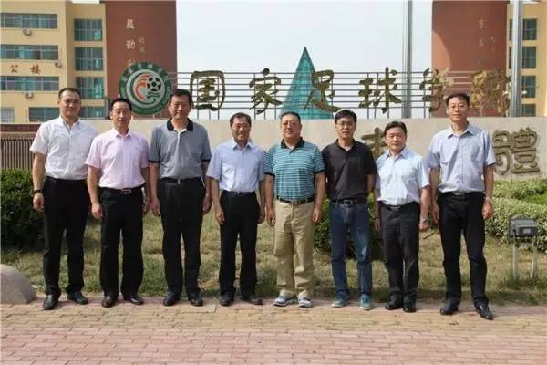 前中国足协党委书记于洪臣(左四)到国家足球学院调研。