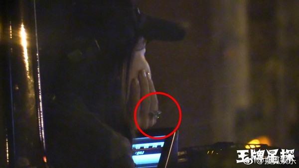 Angelababy车内发呆,手上婚戒闪闪发亮。