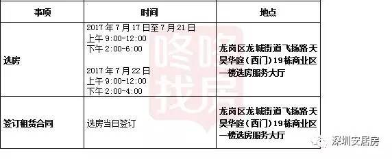 选房者到达现场后,先在龙岗区龙城街道飞扬路天昊华庭(西门)19栋商业区一楼选房服务大厅签到处签到,领取《选房通知单》等资料,再到候选区域,等待叫号。