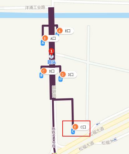 碧头站共设有5个出入口,其中四个出口分布在郎碧路的两侧,为了方便市民坐地铁出行,在松福大道上又特地开设了C出入口。这样,乘客走地下通道比较近,省去了拿着行李还要绕路的麻烦。