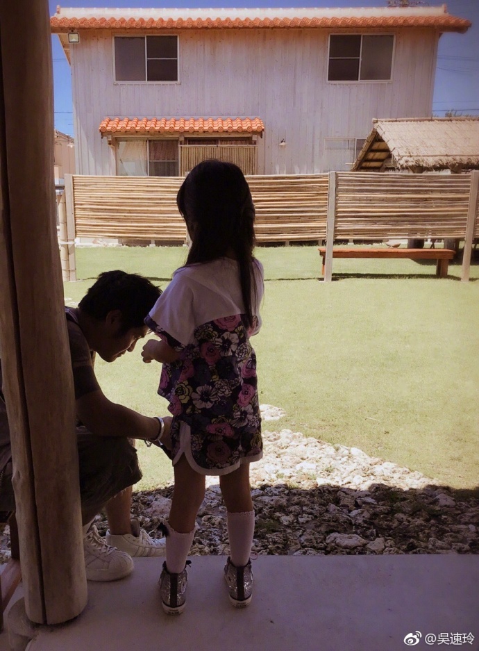 曹格一家出游 娇妻身材完美 grace变长腿萌妹啦!