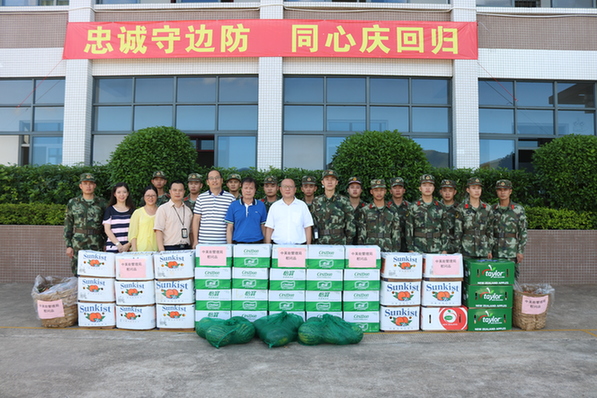 曾萌明每到一处,都深入营区,与基层部队战士亲切交流。长期以来,边防第十三中队独立排忠诚履行党和人民赋予的神圣使命,真抓实干、锐意进取,不断加强部队革命化、正规化、现代化建设,继承发扬人民军队拥政爱民的光荣传统,积极投身地方建设,对中英街经济社会发展做出贡献,中英街管理局为表示感谢,赠送部队慰问品橙子20箱、饮用水20箱、西瓜200斤,荔枝100斤。部队中队长张振金感谢中英街管理局长期以来对部队的支持和关爱。他们表示,广大官兵将进一步加深“同呼吸、共命运、心连心”的军政军民情谊,一如既往地支持地方建设,为驻地经济和社会稳定作出新的贡献。(通讯员 王书兰)