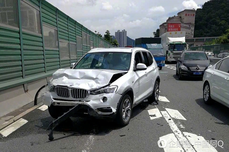 罗湖东环高架桥上两车碰撞 宝马车被撞到面目全非