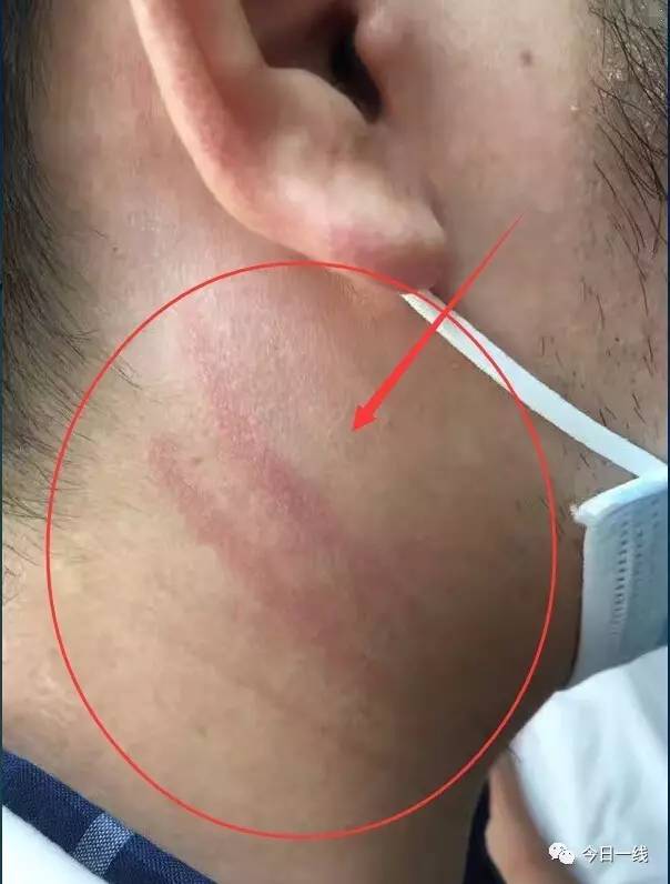 ↑被打医生耳下出现明显红印↑
