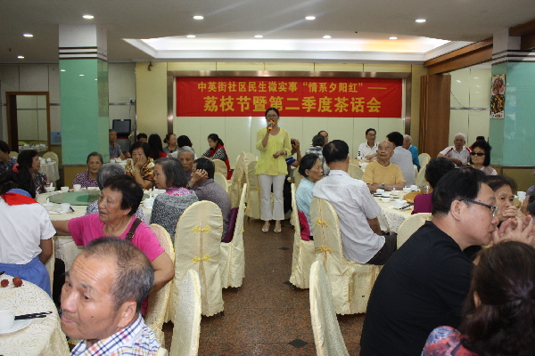 下午4时30分,茶话会正式开始,场面热闹非凡,一片欢声笑语,陈丽珊主任代表社区党委致辞时表示,中英街社区民生微实事“情系夕阳红”系列活动得到了中英街管理局党委的大力支持,老年协会每年举办一次“荔枝节茶话会”,每季度举办一次“长者集体生日会”活动效果明显,陈丽珊充分肯定了老年协会在服务社区老人、参与社区公益活动等方面取得的成绩,社区党委会继续支持老协工作,把民生微实事项目做实做细,该项目惠及到千家万户。
