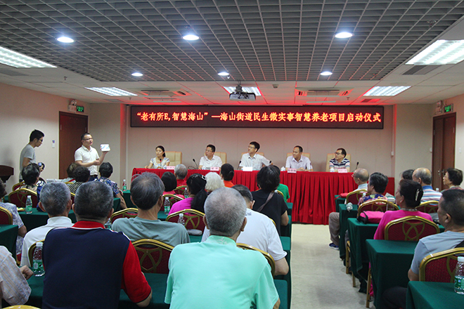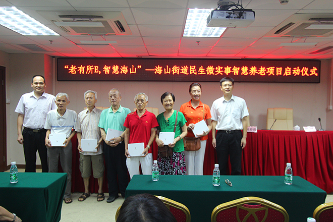 据了解,海山街道老年人多,户籍老人达到1600余人,本次智慧养老项目将为70岁以上的户籍老人家庭提供智慧养老服务,覆盖海山街道鹏湾、田东、海涛、梧桐四个社区的680户家庭,服务老人总数量920人。