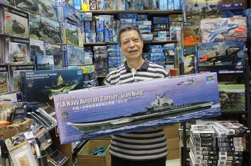 这些积木和小模型只属“入门级”,模型发烧友或军事迷或觉得吸引力不足。记者走访在油麻地的“康田模型玩具公司”,该店可说是香港军事模型“老字号”,老板萧锦春介绍了两款造工精细,更具观赏价值的辽宁舰模型。