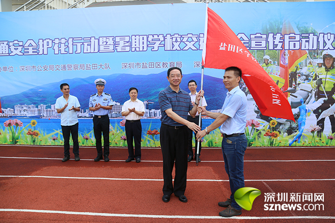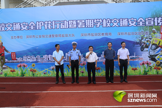 深圳新闻网讯 (记者 潘峰)暑期来临,学生们的交通安全成为社会关注的问题。为提高全区中小学生文明交通安全意识,7月7日上午,盐田区交警大队联合区教育局在田心小学开展“护花行动”暨暑假交通安全宣传启动仪式,确保中小学生度过一个平安的暑假。盐田区副区长乔宏彬、盐田区教育局、盐田交警大队和盐田区团区委等相关负责人以及全区15所中小学代表参加了活动。