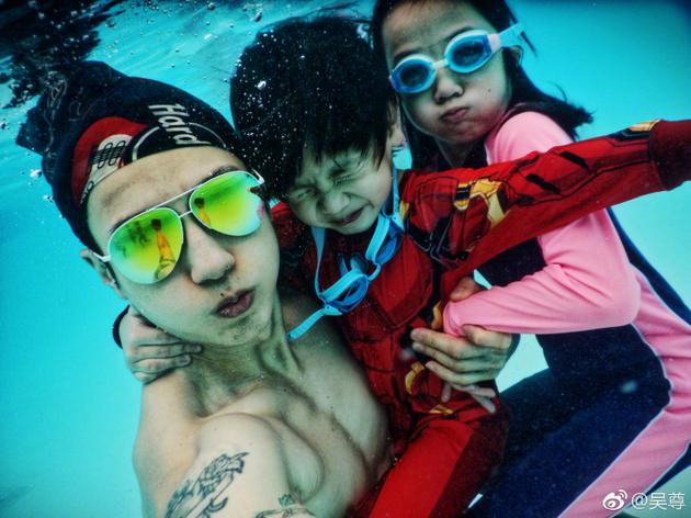 7月9日,吴尊通过微博晒带俩娃游泳的照片,并称:“Max终于敢把头潜进水里,游泳老师教半年都不会,Nei Nei也是我教会游泳的,其时,不是我厉害,而是我们爸爸可以给到他们最大的安全感!”