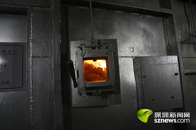 在焚烧间,各种设备展现在记者眼前,粗大的管道包裹得严严实实。透过一块小小的玻璃窗口,可以看到焚烧炉里熊熊大火。据介绍,这些垃圾在炉排上经历了干燥、燃烧及燃尽三个阶段,不用添加辅助燃料,就可充分燃烧。燃烧时,烟气温度高达1050℃,满足烟气在850℃以上至少停留2秒的要求。在垃圾焚烧中,850℃以上的高温,可基本消除二噁英类物质,而烟气在850℃以上停留2秒以上,则可使燃物完全燃烧。