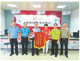 获救保安廖佳良来到田东社区工作站为救命恩人们送上锦旗。
