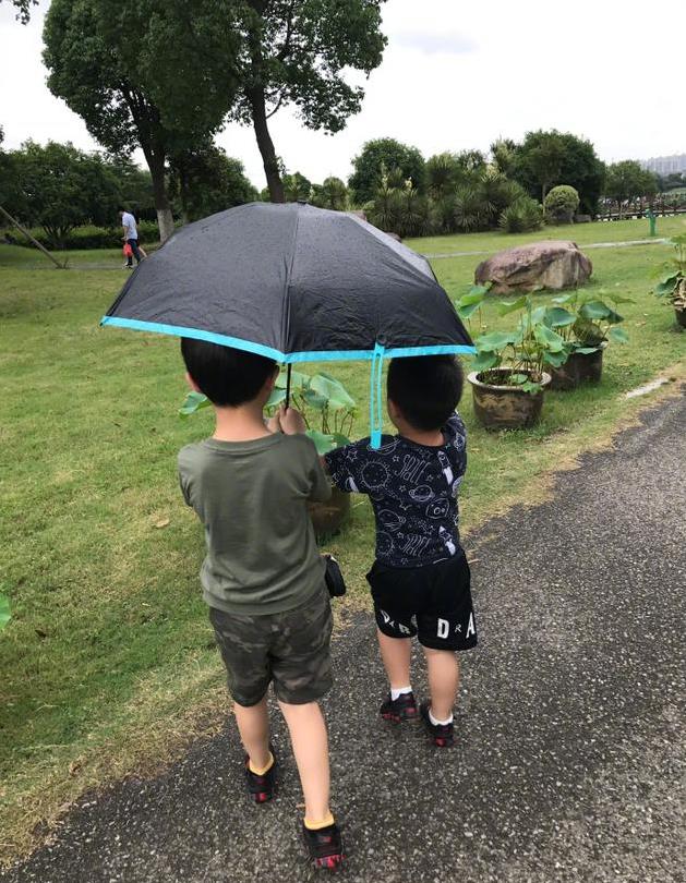 胡可晒安吉为小鱼儿撑伞照 兄弟俩雨中同行好温馨