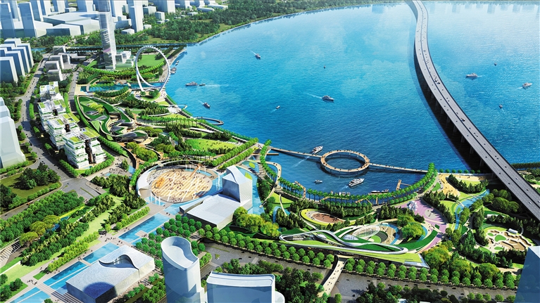 宝安滨海文化公园(一期)项目规划概念效果图之滨海文化公园鸟瞰。