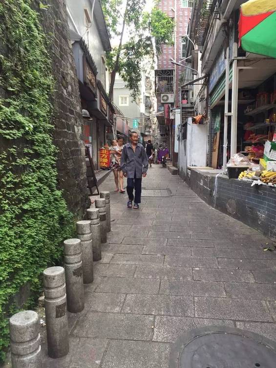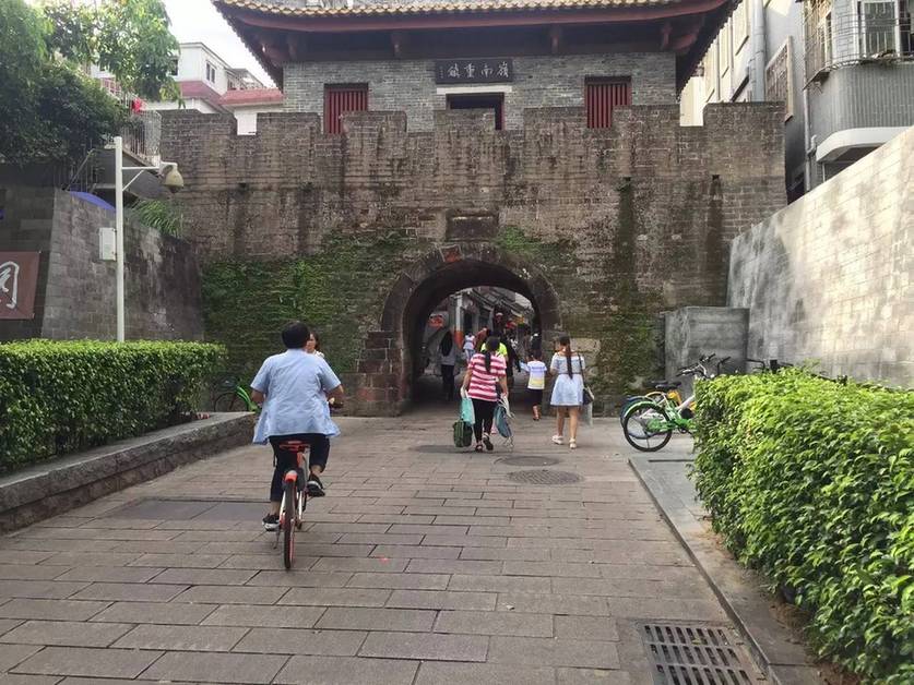古城里,青砖铺就的路高低起伏,推着满车货的三轮车夫吃力的蹬着,修葺中的东莞会馆门前堆着石条,广州新安县衙的大门口搭着脚手架,馄炖店的老板忙着给探身进来的陌生人找她要借的充电线,偶尔有人骑着共享单车进来,像是在岁月的幕布上开了道口,一缕现代化的生气穿梭在老街道上。