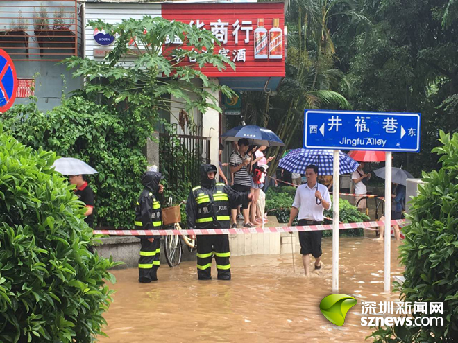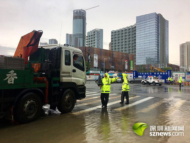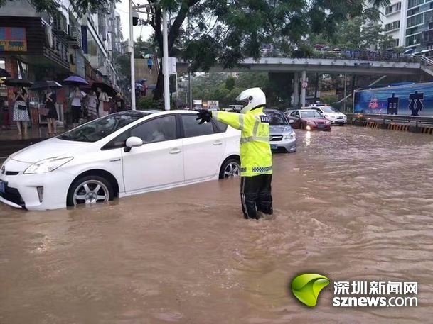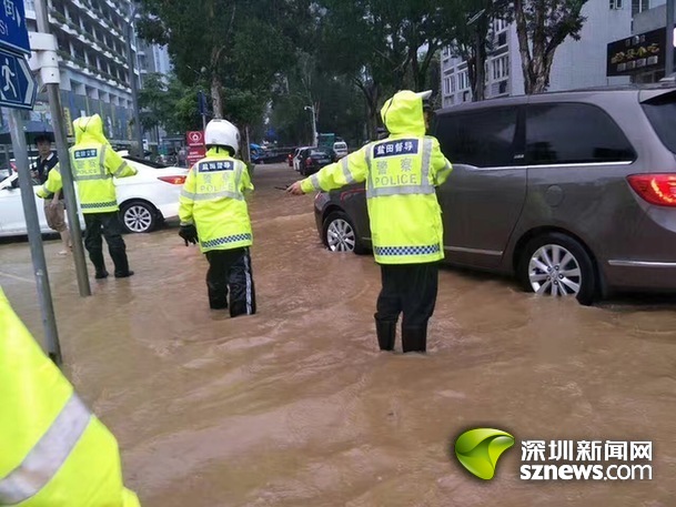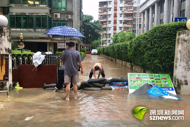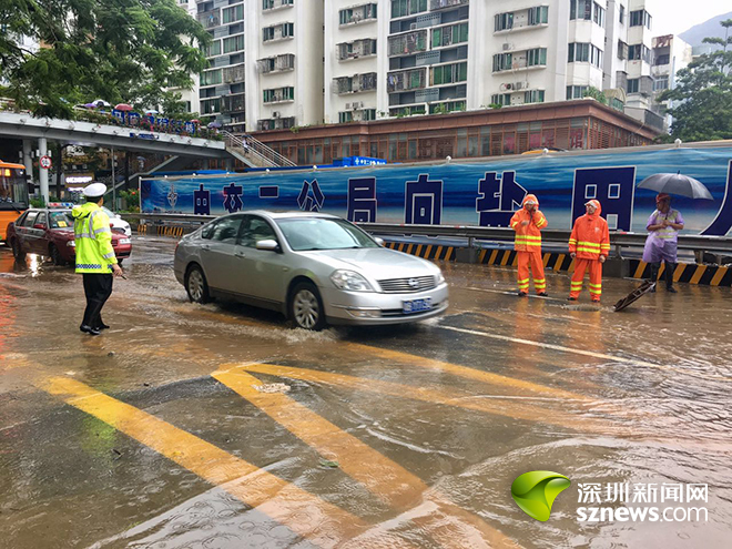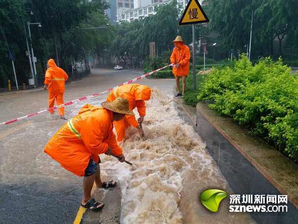 因短时降雨强度太大,排水管道超负荷运行,导致部分路段、小区积水,包括海山路广富百货路段、香径南街、金融路、深盐路区政府段、供电局段、公园路金融路路口、马庙街海景二路交汇处等路段发生10-20cm积水,个别低洼路段达到20-30cm;鹏湾花园一村、二村和诗宁别墅、梧桐阁等小区出现约20cm积水,诗宁别墅个别低洼处达40cm积水;盐梅路菠萝山转弯处、盘山公路罗湖方向、盐梅路食街交叉口段、云深处边坡等有块石、土体滑落。因积水,部分路段交通受阻,个别路段如恩上路、马庙街、深盐路区政府路段采取了短时封闭措施。
