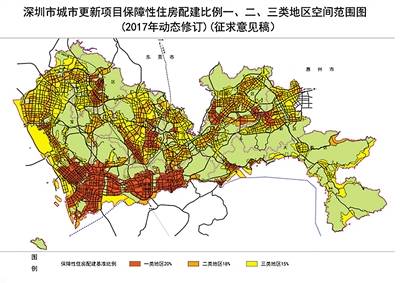 ③深圳市规划国土委发布了关于征求《深圳市城市更新项目保障性住房配建规定》附图动态修订意见的通知。本次修订扩大了城市更新保障性住房配建比例地区范围,基本生态控制线外全覆盖,适用于所有改造为住宅和商务公寓的拆除重建类城市更新项目。