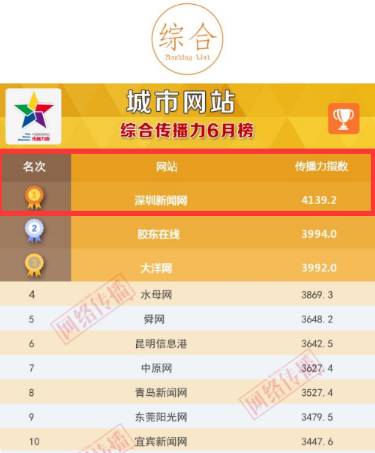 城市网站传播力6月榜出炉,深圳新闻网综合传播力排第一。小编在这里深深地感谢大家的支持,未来请继续呼朋唤友关注我们哦!