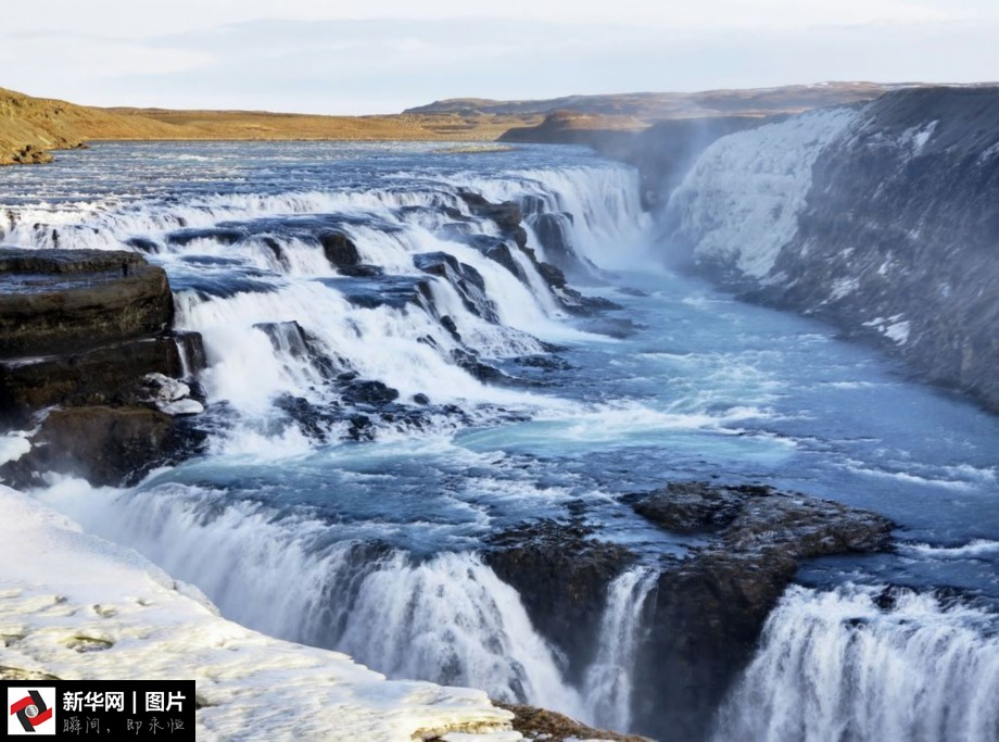 黄金瀑布位于冰岛首都雷克雅未克以东北125公里外,宽2500米,高70米,为冰岛最大的断层峡谷瀑布,塔河在这里形成上、下两道瀑布,下方河道变窄成激流,是冰岛人最喜爱的瀑布,也是欧洲著名的瀑布之一。