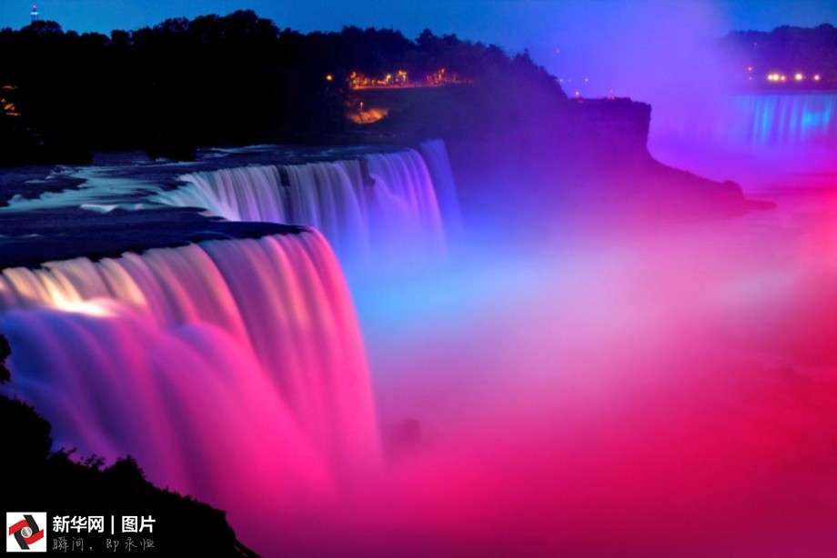 尼亚加拉瀑布位于加拿大和美国的交界处,瀑布周围的各种巨型聚光灯在夜幕降临之际都会散发光芒,并同时照亮瀑布,形成一道道绚丽的彩虹,在霓虹灯的五彩灯光下尼亚加拉瀑布烟雾缭绕,仿若仙境一般。这一幕美景由34岁的摄影师Rajeev Nair拍摄。