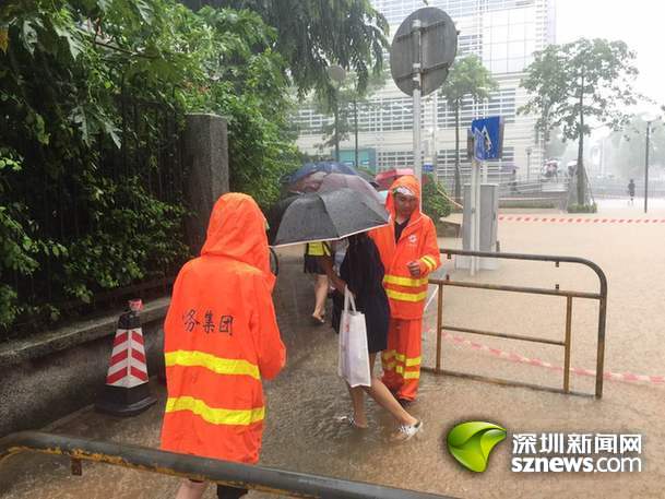 雨中频现互帮互助画面 暴雨冲不走盐田的爱心