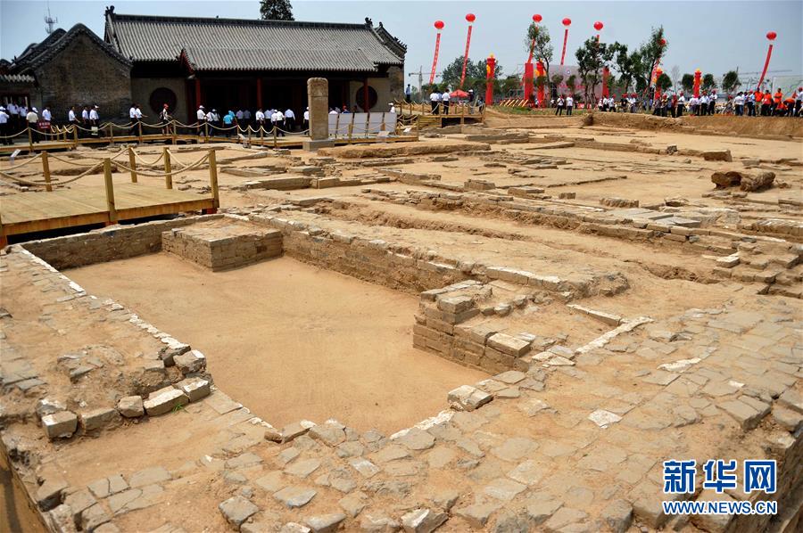 大运河南旺枢纽考古现场发掘的分水龙王庙建筑群古遗址(2011年6月11日摄)。