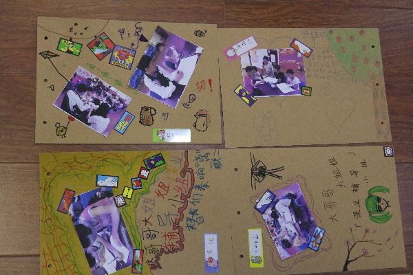 在小组活动的第一节,社工就带领中学生和小学生开展了破冰小游戏,帮助他们在游戏中相互熟悉和认识。在讲解了小组规则和注意事项后对他们进行了分组并开展一对一或一对二的辅导。在接下来的二、三、四、五、六节小组活动中由中学生负责监督并辅导小学生薄弱的科目及暑假作业中难解的题目。最后一节小组在辅导了一个小时后,社工拿出事先打印好的在辅导过程中抓拍的照片以及空白的相册、剪刀等物资,让他们边回顾边把照片命名并贴在相簿上。有的命名为“这题应该这样解答”并在后面加了一个笑脸;有的命名为“解题ing”;有的则写道:“炎炎夏日,清凉去处(因为辅导的地方有空调)”;有的则不无感慨的写道:“快乐的辅导时光,转眼已近落幕”。最后,社工拿出印有肯定中学生辅导工作的奖状,小学生拿出提前做好的贺卡一起送给了中学生并与他们一一道别。