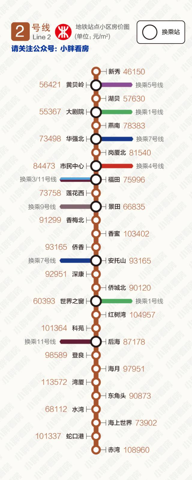 2号蛇口线,本月依然发挥稳定,有6个站点均价超过10万。
