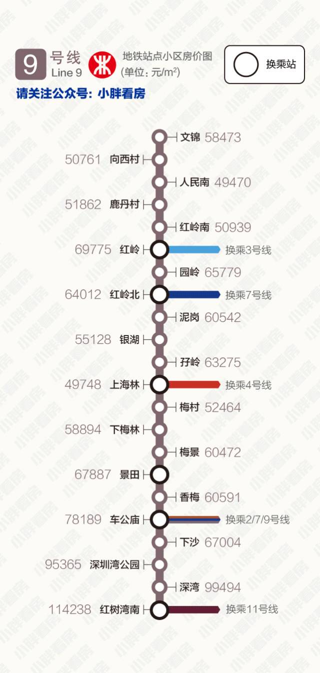 均价最高地铁站:红树湾南站(114238元/㎡)