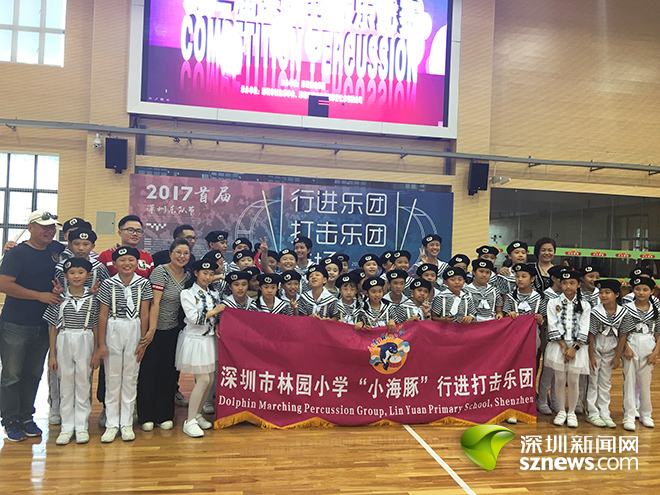 深圳新闻网讯 近日,2017首届“深圳乐队节”乐队展演在龙华中心小学拉开帷幕,来自包括香港特别行政区在内的全国14支优秀队伍登台献艺,角逐各级奖项。最终,盐田区林园小学的“小海豚”行进打击乐队凭借精彩演奏征服了现场评委,摘得本届大赛桂冠。在当日下午举办的“第二届打击乐比赛”中,该校乐队再次力克群雄,崭获冠军,成为首届深圳乐队节上唯一一支双料梦之队,同时也是获邀登上“首届乐队节颁奖盛典”领奖台的唯一一支行进打击乐队。