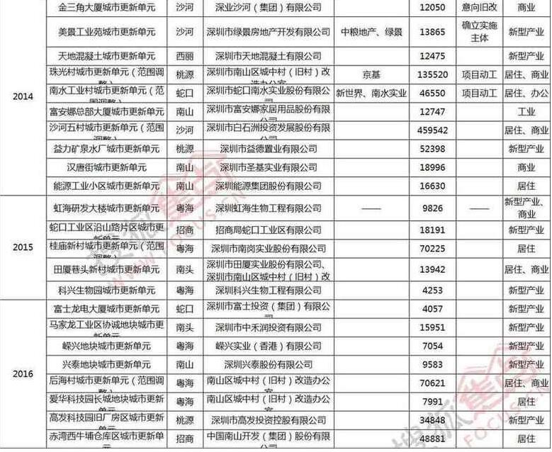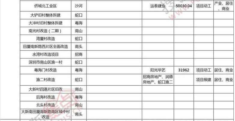 在已完成改造的旧村项目上,田厦新村是南山首个完成自主改造的城中村项目,占地面积约2.9万㎡,总建面15.75万㎡,2010年底已竣工验收;大冲村整体改造项目无疑是全国旧村改造的标杆,该项目实施主体为华润,目前已经建成华润城入市。